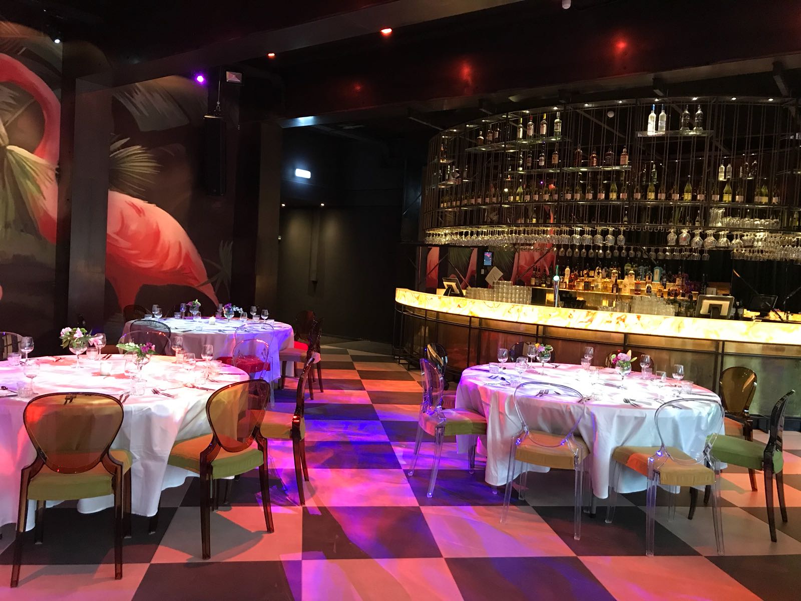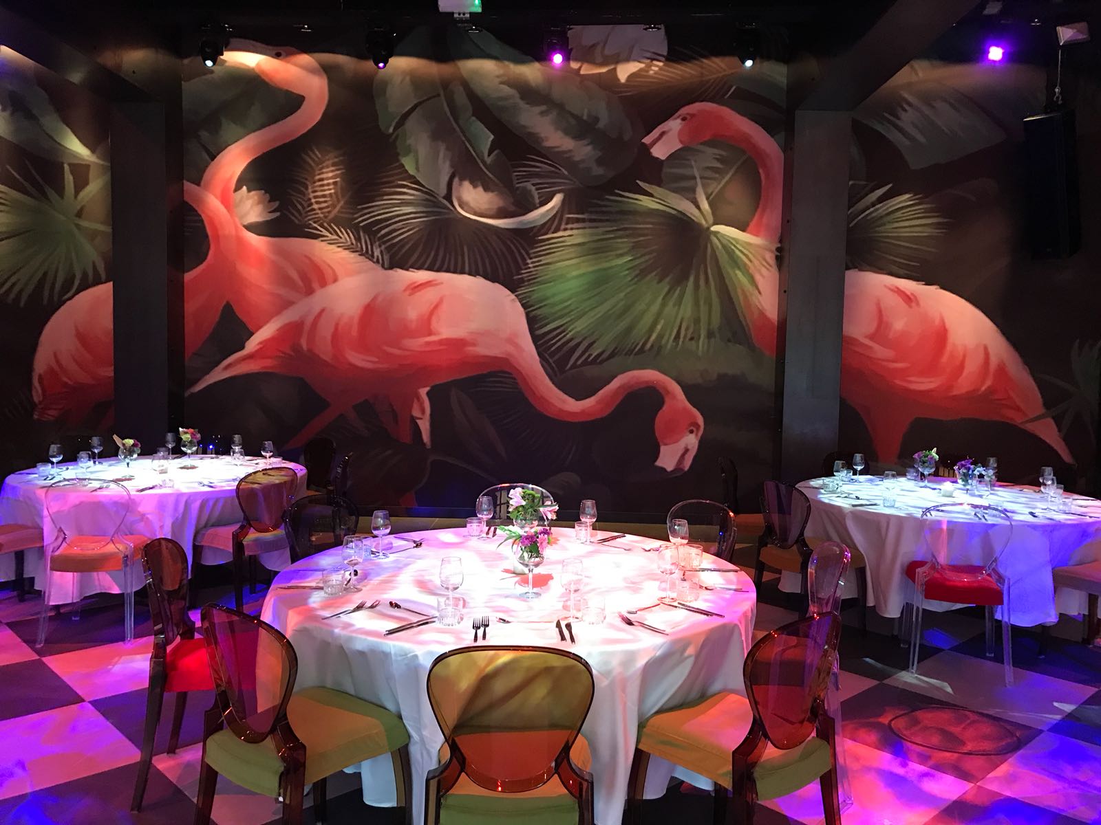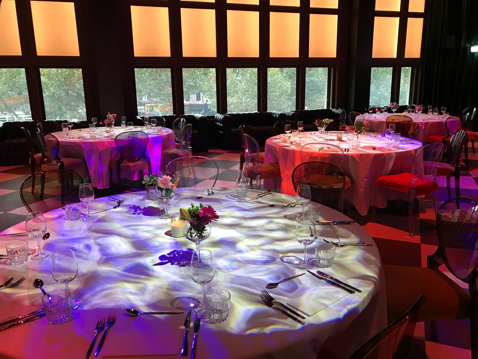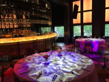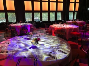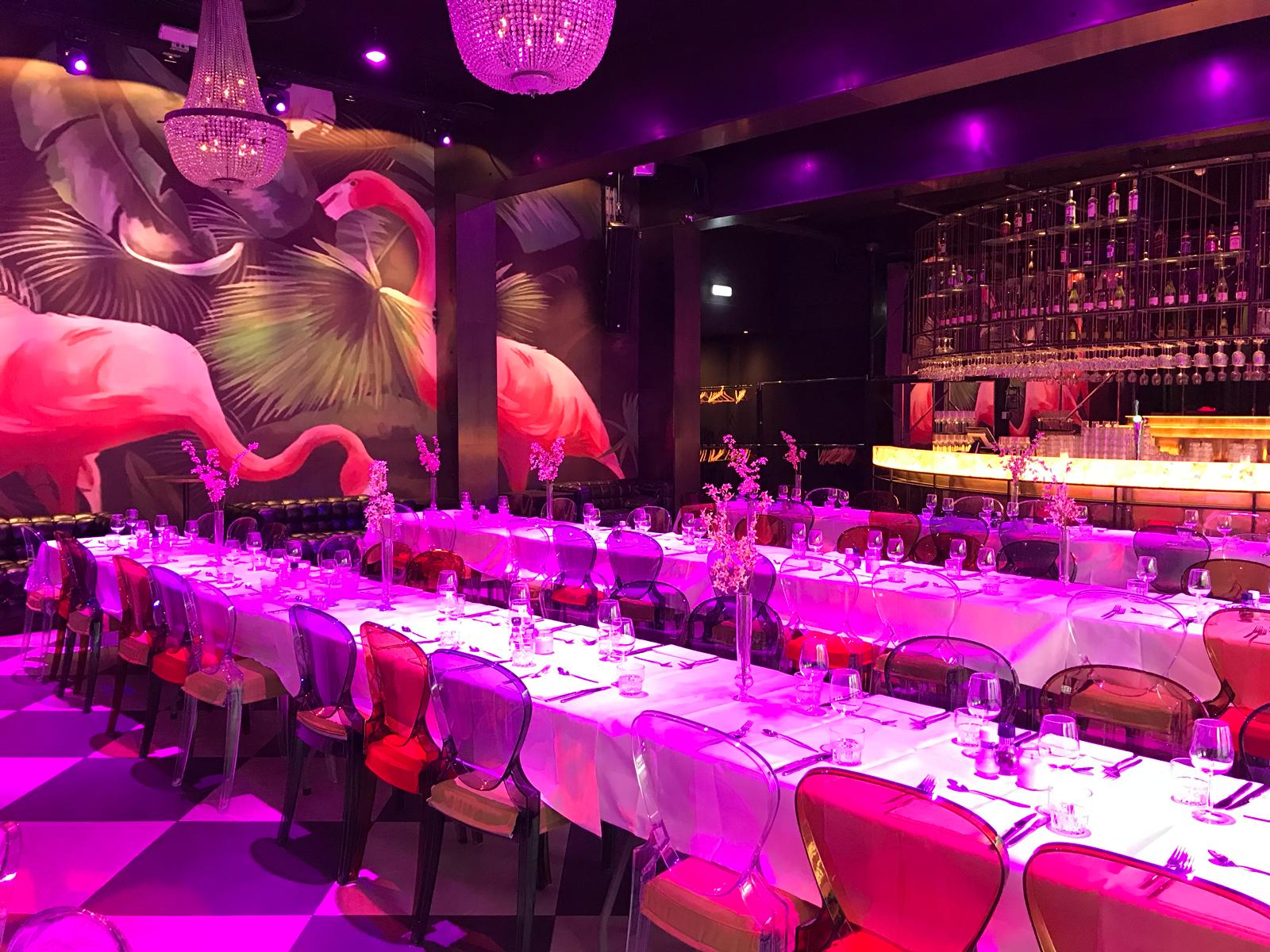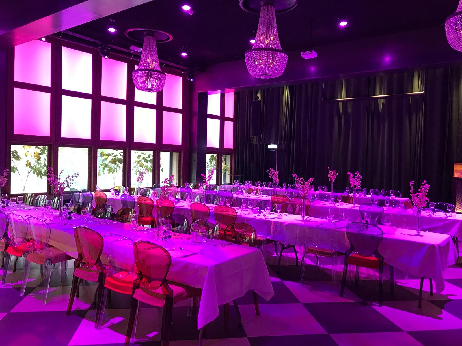 The maximum capacity for seated dinner is 100 persons and for a standing reception 250 persons. We offer the location including serving personnel and facilities as dining tables, dining chairs, cutlery, tableware, cleaning costs, energy costs, light and sound installation (including a a DJ booth with DJM800 mixer and 2 x CDJ2000 CD player).